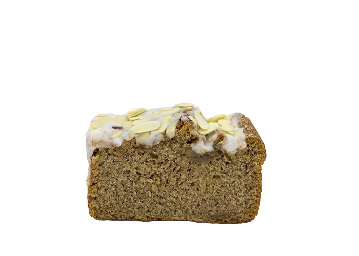 Harina integral, endulzado con azúcar regular, azúcar glass y almendra fileteada.