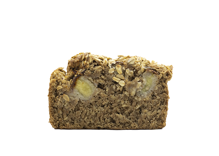 Harina integral, endulzado con jarabe de miel de agave con plátano y avena.
